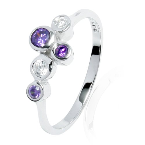 Rafaela Donata - 608001094 - Argento Classico - Bague Femme - Plaqué Rhodium avec Zirconium Blanc / Violet - Argent 925/1000 - T63